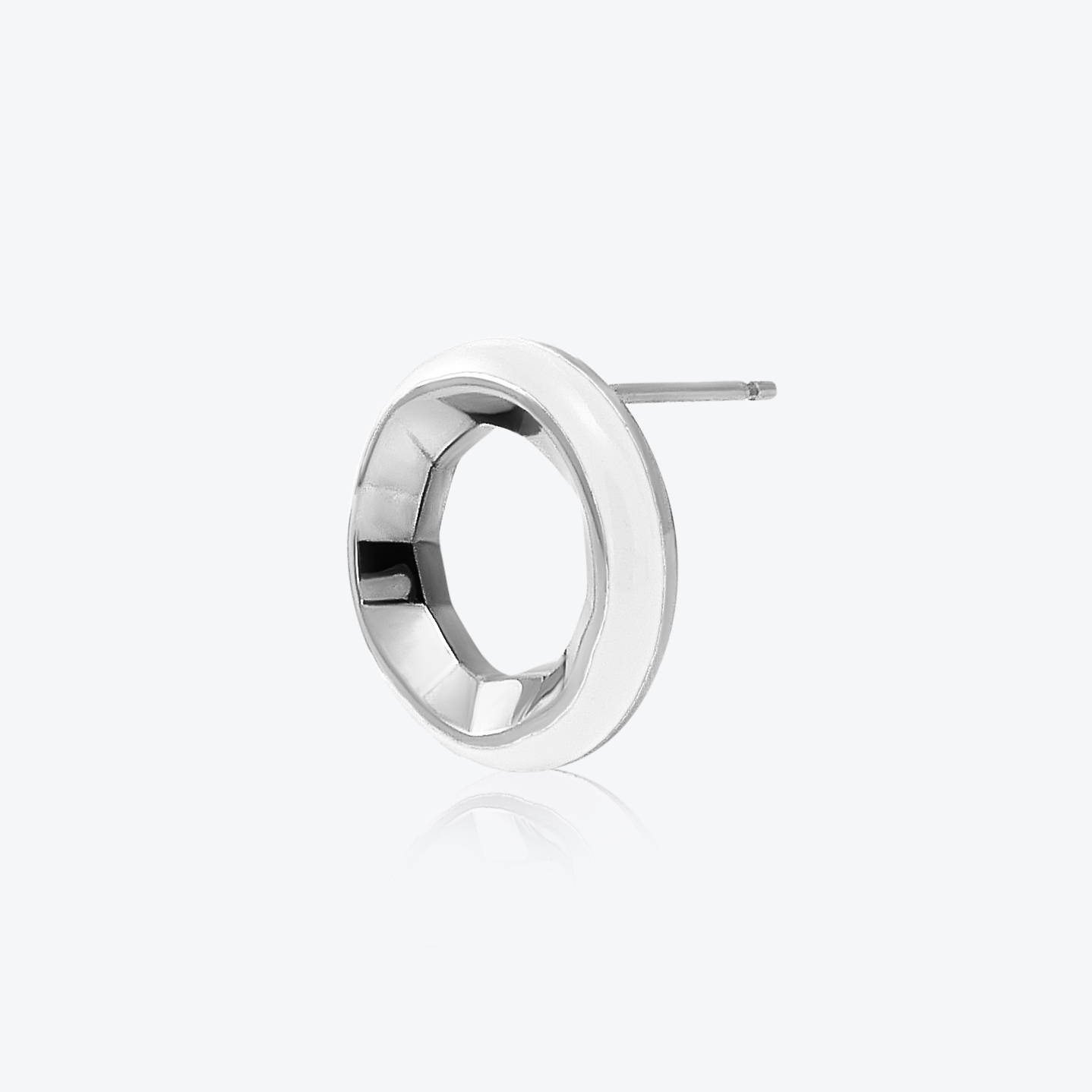 A ring of magical light these stud earrings make an elegant, yet bold statement. Rounded, opulent snow white enamel juxtaposed with an inner array of gleaming silver geometric facets catching the light at all angles. These stud earrings sparkle every time you move. Our Sun Halo is crafted with artistry, and the highest precision, to deliver stud earrings that will elevate your look instantly.