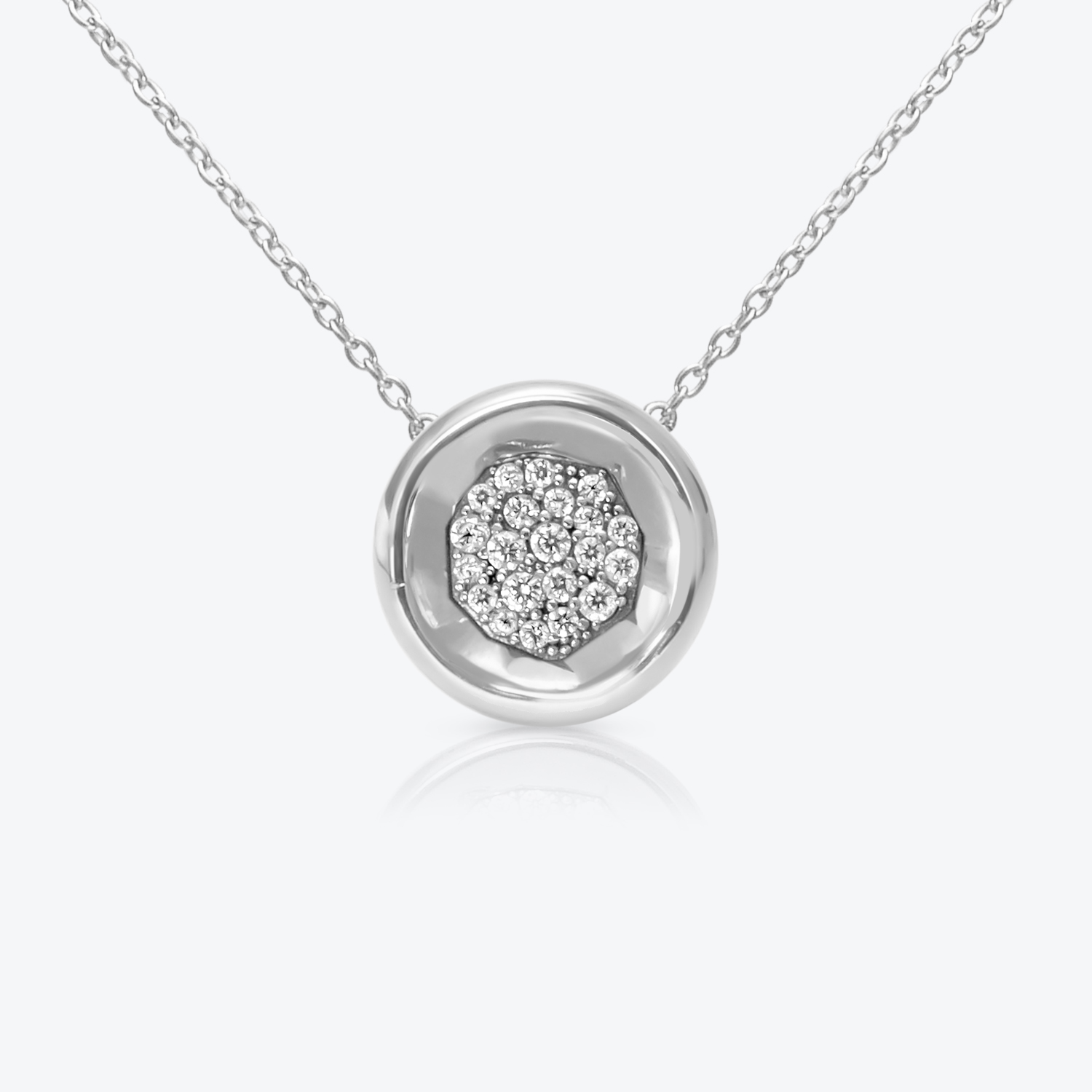 Open circle pendant necklace with diamond pave center in 18kt white gold