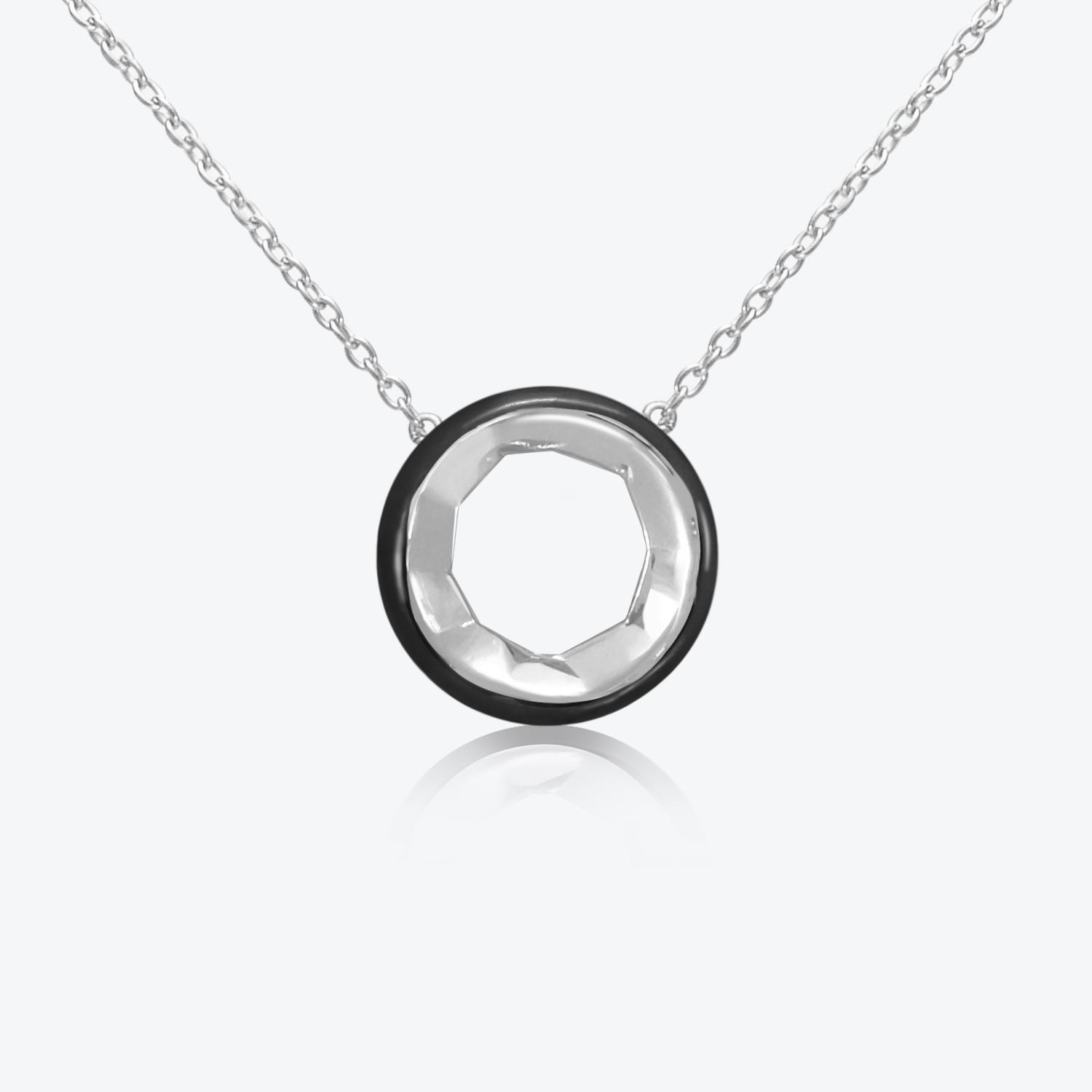 Open circle pendant necklace in sterling silver with jet black enamel