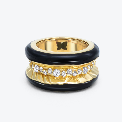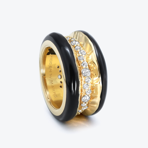 Statement Ring in 18kt gold and lab grown diamonds with black enamel
