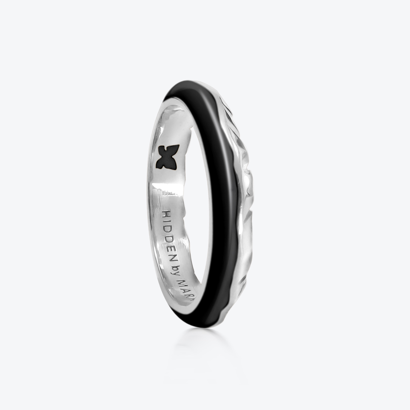 A. Iceberg Silver Ring Plated in 18K Gold with Jet Black Enamel