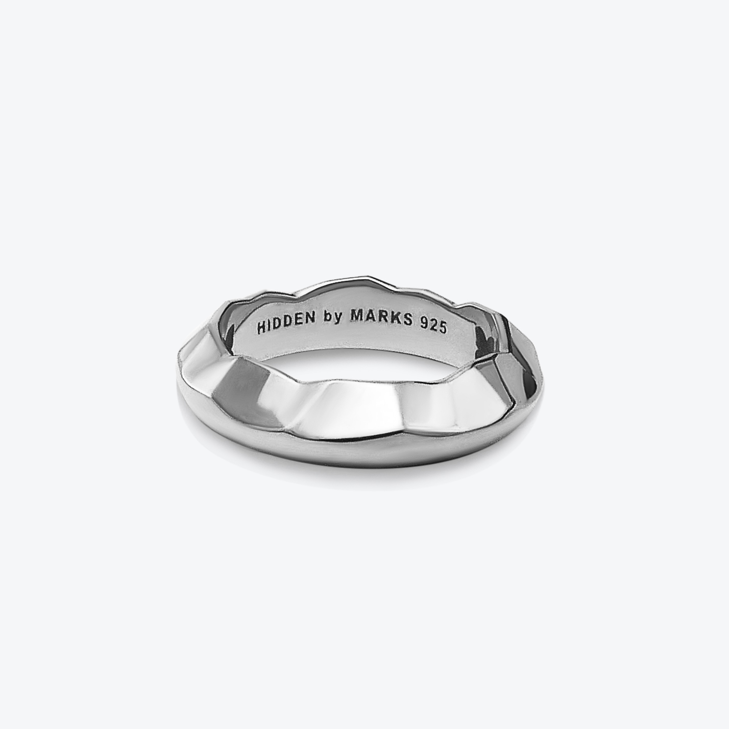 Faceted silver ring that is sculptural, minimalist and perfect for stacking.