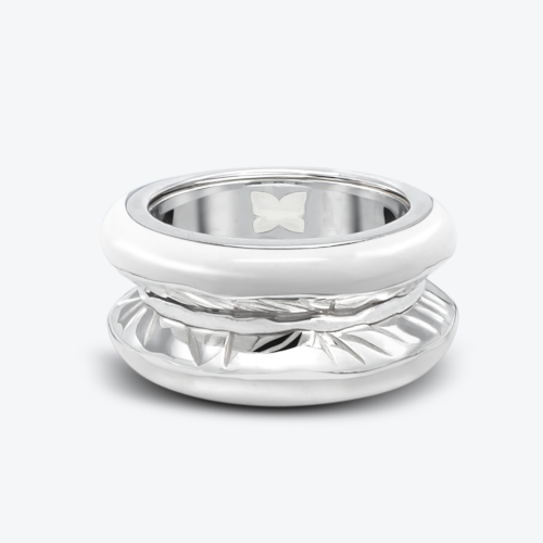 - Signature brand symbol in enamel inside the ring