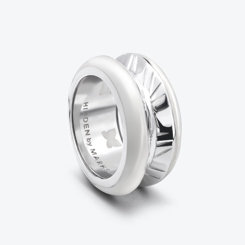 Unisex statement ring in 18kt white gold with white enamel.