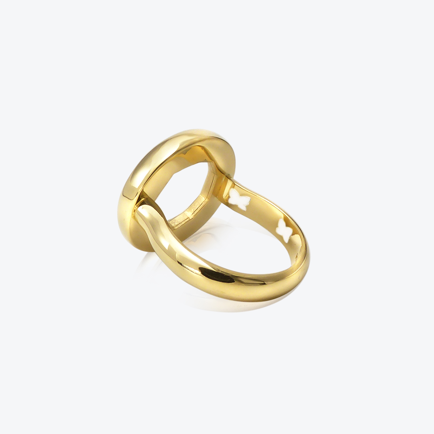- Signature butterflies in polished enamel